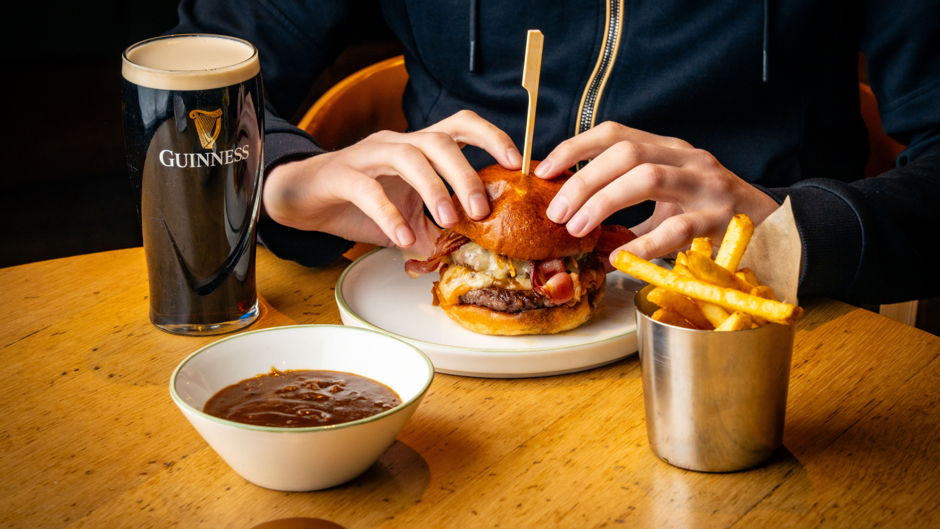 Big games call for serious food. Take on the Guinness Gravy Dip Burger — double British beef, smoked bacon, cheddar, crispy potato and Guinness caramelised onions, served with rich Guinness gravy for dipping. It’s a proper rugby feast and the ultimate matchday companion.
